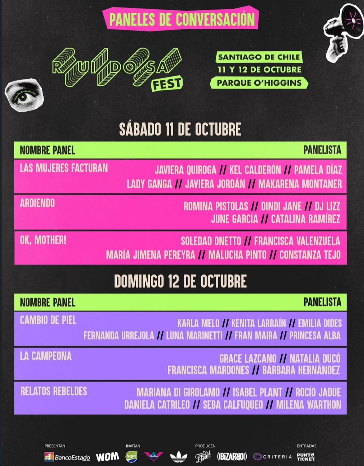 La conversación es una parte fundamental y característica de Ruidosa Fest, paneles que sonarán con fuerza, cuyas temáticas y participantes serán: